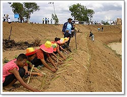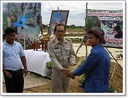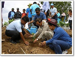 สถานีพัฒนาที่ดินบุรีรัมย์ ร่วมกิจกรรมโครงการปลูกหญ้าแฝกเฉลิมพระเกียรติ และโครงการปลูกต้นไม้ถวายแม่ของแผ่นดิน ณ บริเวณรอบฝายบ้านศรีสมบูรณ์ ต.โคกขมิ้น อ.พลับพลาชัย จ.บุรีรัมย์ วันที่ 14 สิงหาคม 2555