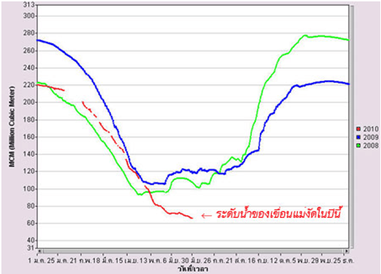 เปรียบเทียบระดับน้ำของเขื่อนแม่งัดสมบูรณ์ชล
