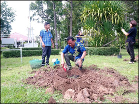 พร้อมด้วยเจ้าหน้าที่สถานีพัฒนาที่ดินมุกดาหาร ร่วมปลูก ต้นรวงผึ้ง