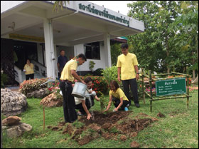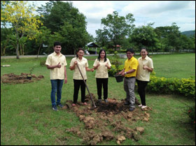 ร่วมกันปลูกต้นรวงผุ้ง จำนวน 10 ต้น ณ บริเวณสนามหน้าอาคารสถานีพัฒนาที่ดินหนองบัวลำภู