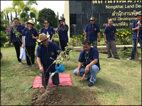พนักงานราชการ และเจ้าหน้าที่สถานีพัฒนาที่ดินหนองคาย ร่วมกันปลูกต้นรวงผึ้ง