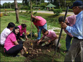 ร่วมกันปลูกต้นรวงผึ้ง ซึ่งเป็นต้นไม้ประจำพระองค์ของสมเด็จพระเจ้าอยู่หัวมหาวชิราลงกรณบดินทรเทพยวรางกูร