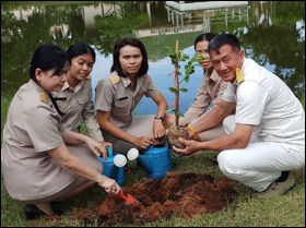 ร่วมกันปลูกต้นรวงผึ้ง (ต้นไม้ประจำพระองค์ของสมเด็จพระเจ้าอยู่หัวมหาวชิราลงกรณ