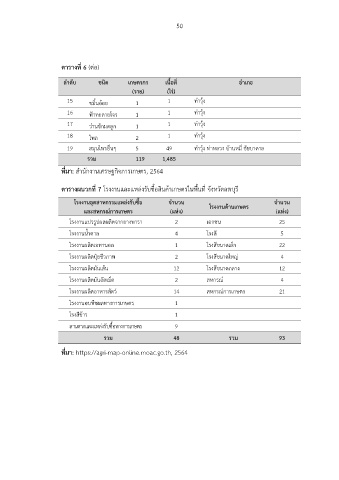 ตารางผนวกที่ 7 โรงงานและแหลงรับซื้อสินคาเกษตรในพื้นที่ จังหวัดลพบุรี