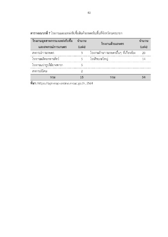 ตารางผนวกที่ 7 โรงงานและแหล่งรับซื้อสินค้าเกษตรในพื้นที่จังหวัดนครนายก