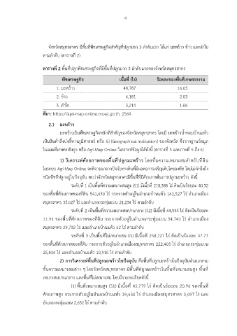 ในแผนที่เกษตรเชิงรุก หรือ Agri-Map Online วิเคราะห์ข้อมูลได้ดังนี้ (ตารางที่ 3 และภาพที่ 5 ถึง 6)