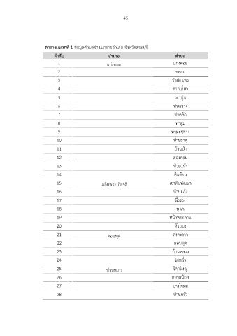 ตารางผนวกที่ 1 ข้อมูลตำบลจำแนกรายอำเภอ จังหวัดสระบุรี