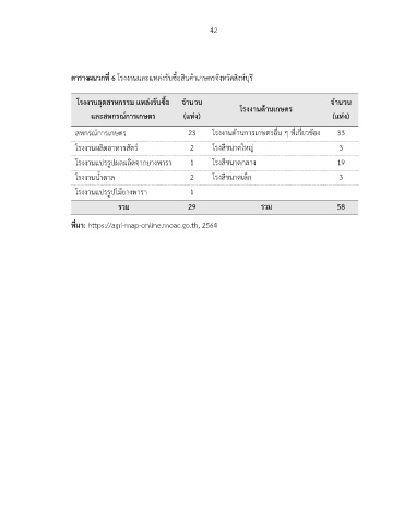 ตารางผนวกที่ 6 โรงงานและแหล่งรับซื้อสินค้าเกษตรจังหวัดสิงห์บุรี