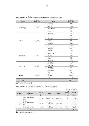 ตารางผนวกที่ 2 พื้นที่ชลประทานจังหวัดจันทบุรีจ าแนกรายอ าเภอ ต าบล