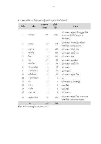 ตารางผนวกที่ 6 ทะเบียนเกษตรกรผู้ปลูกพืชสมุนไพร จังหวัดจันทบุรี