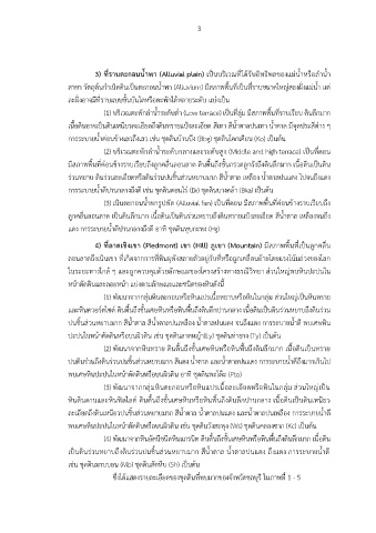 3) ที่ราบตะกอนน าพา (Alluvial plain) เป็นบริเวณที่ได้รับอิทธิพลของแม่น้ าหรือล าน้ า