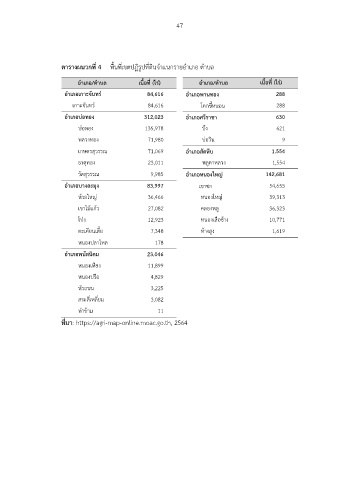 อ าเภอ/ต าบล เนื อที่ (ไร่) อ าเภอ/ต าบล เนื อที่ (ไร่)