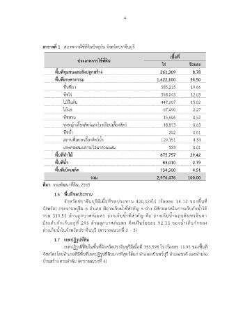 ตารางที่ 1 สภาพการใช้ที่ดินปัจจุบัน จังหวัดปราจีนบุรี
