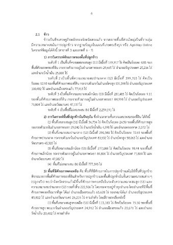 พิจารณาจากพื้นที่ศักยภาพของที่ดินสำหรับการปลูกข้าว และพื้นที่ปลูกข้าวในชั้นความเหมาะสมต่าง ๆ