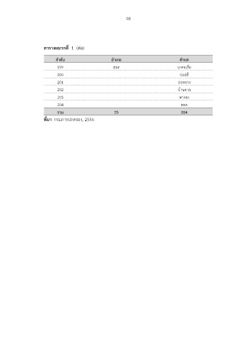 48 ตารางผนวกที่ 1 (ตอ) ลําดับ อําเภอ ตําบล 199 ฮอด นาคอเรือ 200 บอสลี 201 บอหลวง 202 บานตาล 203 หางดง 204 ฮอด รวม 25 204 ที่มา: กรมการปกครอง, 2556