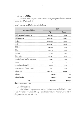 ตารางที่ 1 สภาพการใชที่ดินปจจุบันของจังหวัดเชียงราย