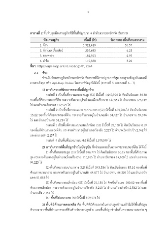 ตารางที่ 2 พื้นที่ปลูกพืชเศรษฐกิจที่มีพื้นที่ปลูกมาก 4 ลําดับแรกของจังหวัดเชียงราย