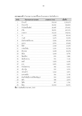ตารางผนวกที่ 5 กิจกรรมการเกษตรที่ขึ้นทะเบียนเกษตรกร จังหวัดเชียงราย