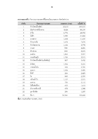 ตารางผนวกที่ 5 กิจกรรมการเกษตรที่ขึ้นทะเบียนเกษตรกร จังหวัดลําปาง