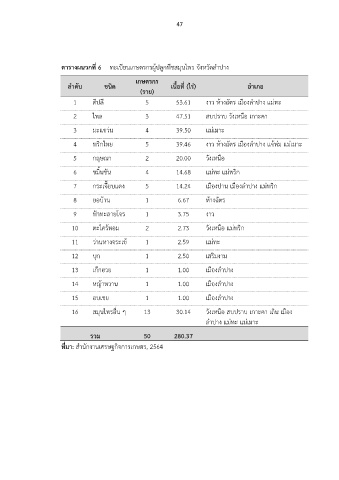 ตารางผนวกที่ 6 ทะเบียนเกษตรกรผูปลูกพืชสมุนไพร จังหวัดลําปาง