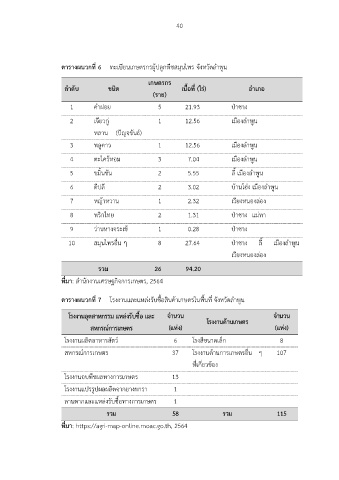 ตารางผนวกที่ 7 โรงงานและแหลงรับซื้อสินคาเกษตรในพื้นที่ จังหวัดลำพูน