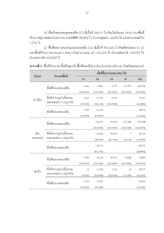 (1) พื้นที่เหมาะสมสูงคงเหลือ (S1) มีเนื้อที่ 54,971 ไร คิดเปนรอยละ 69.05 ของพื้นที่
