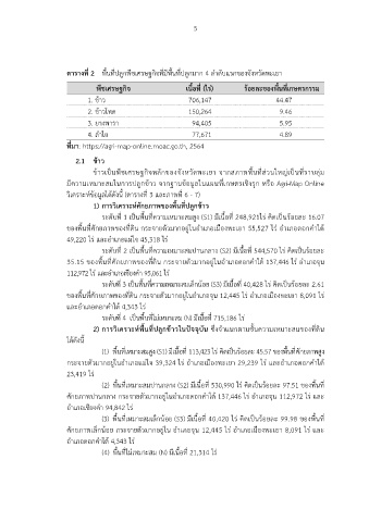 ตารางที่ 2 พื้นที่ปลูกพืชเศรษฐกิจที่มีพื้นที่ปลูกมาก 4 ลําดับแรกของจังหวัดพะเยา