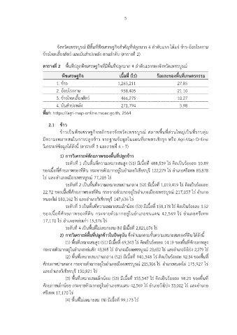 ตารางที่ 2 พื้นที่ปลูกพืชเศรษฐกิจที่มีพื้นที่ปลูกมาก 4 ลําดับแรกของจังหวัดเพชรบูรณ