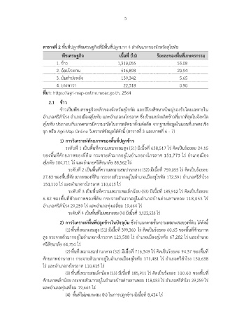 ตารางที่ 2 พื้นที่ปลูกพืชเศรษฐกิจที่มีพื้นที่ปลูกมาก 4 ลําดับแรกของจังหวัดสุโขทัย