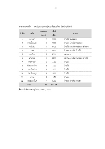 ตารางผนวกที่ 6 ทะเบียนเกษตรกรผูปลูกพืชสมุนไพร จังหวัดอุทัยธานี