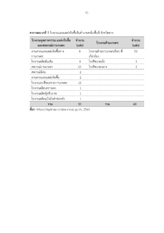 ตารางผนวกที่ 7 โรงงานและแหลงรับซื้อสินคาเกษตรในพื้นที่ จังหวัดตาก