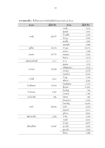 ตารางผนวกที่ 2 พื้นที่ชลประทานจังหวัดบุรีรัมย์จําแนกรายอําเภอ ตําบล