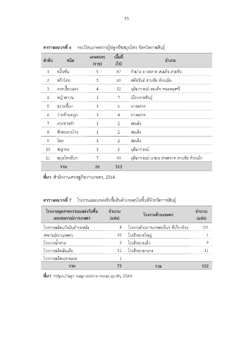 ตารางผนวกที่ 7 โรงงานและแหล่งรับซื้อสินค้าเกษตรในพื้นที่จังหวัดกาฬสินธุ์
