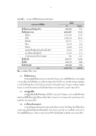 ตารางที่ 1 สภาพการใช้ที่ดินปัจจุบันของจังหวัดเลย