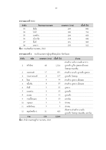 ลำดับ ชนิด เกษตรกร (ราย) เนื้อที่ (ไร่) อำเภอ