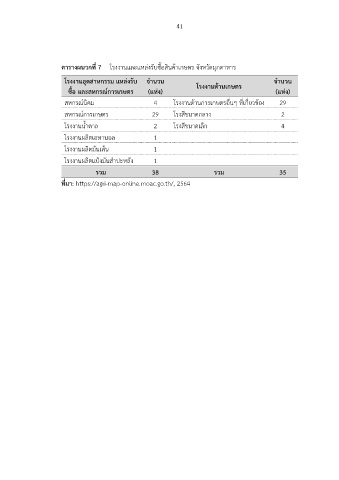 ตารางผนวกที่ 7 โรงงานและแหล่งรับซื้อสินค้าเกษตร จังหวัดมุกดาหาร