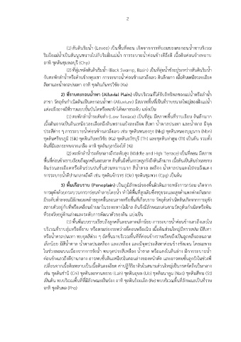 2) ที่ราบตะกอนน้ำพา (Alluvial Plain) เป็นบริเวณที่ได้รับอิทธิพลของแม่น้ำหรือลำน้ำ