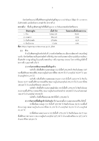ตารางที่ 2 พื้นที่ปลูกพืชเศรษฐกิจที่มีพื้นที่ปลูกมาก 4 ลำดับแรกของจังหวัดศรีสะเกษ
