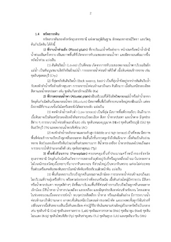 1) ที่ราบน้ำท่วมถึง (Flood plain) ที่ราบริมแม่น้ำหรือลำธาร หน้าฝนหรือหน้าน้ำมักมี