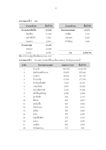 ตารางผนวกที่ 5 กิจกรรมการเกษตรที่ขึ้นทะเบียนเกษตรกร จังหวัดอุบลราชธานี