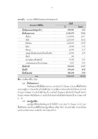 ตารางที่ 1 สภาพการใช้ที่ดินปัจจุบันของจังหวัดอุดรธานี