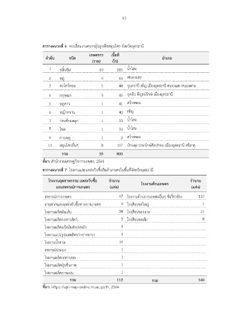 ตารางผนวกที่ 7 โรงงานและแหล่งรับซื้อสินค้าเกษตรในพื้นที่จังหวัดอุดรธานี