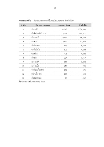 ตารางผนวกที่ 5 กิจกรรมการเกษตรที่ขึ้นทะเบียนเกษตรกร จังหวัดยโสธร