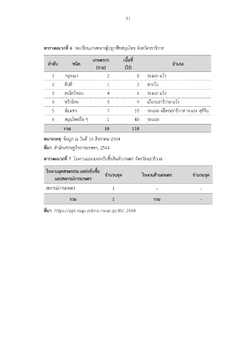 ตารางผนวกที่ 7 โรงงานและแหล่งรับซื้อสินค้าเกษตร จังหวัดนราธิวาส