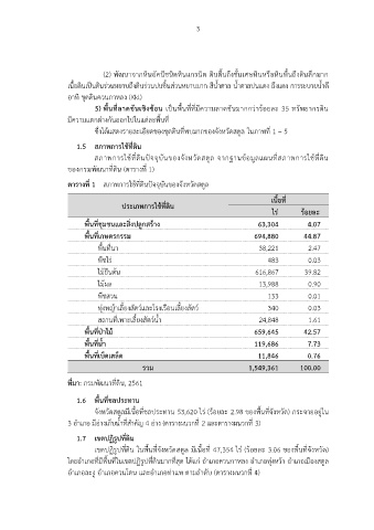 ตารางที่ 1 สภาพการใช้ที่ดินปัจจุบันของจังหวัดสตูล