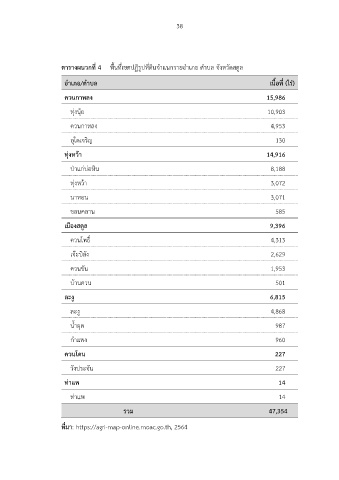ตารางผนวกที่ 4 พื้นที่เขตปฏิรูปที่ดินจ าแนกรายอ าเภอ ต าบล จังหวัดสตูล