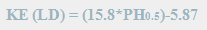 Kinetic energy is then calculated for effective rainfall of leaf drainage (KE (LD); j/m2) and effective rainfall of direct through fall (KE (DT); j/m2). KE (LD) and KE (DT) are a function of plant height (PH) and intensity (I) respectively. Kinetic energy of direct through fall is computed as follows. |