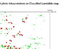 | In order make an accuracy assessment, the classification results of the various band combinations, after masking out the landslide features using the masks from Geology and Slope gradient, were crossed with the Landslide map produced from aerial photo interpretation. |