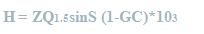 | Transport capacity of runoff (TC; kg/m2) is estimated as a function of runoff (Q) surface cover factor (C), runoff and slope gradient (0) as follows. |