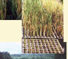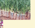 ในถุงพลาสติก กล้าหญ้าแฝกที่ได้จากแม่พันธุ์ที่แข็งแรง นำมาทำการขยายพันธ์ปลูกในถุงพลาสติกกว้าง 2 นิ้ว ยาว 6 นิ้ว ซึ่งเหมาะสำหรับ นำไปปลูกลงดินหรือในพื้นที่เป้าหมาย การปลูกหญ้าแฝกที่ได้จากการขยายพันธุ์ในุถุงขนาดเล็กนี้จะช่วยให้หญ้าแฝก รอดตายสูง |